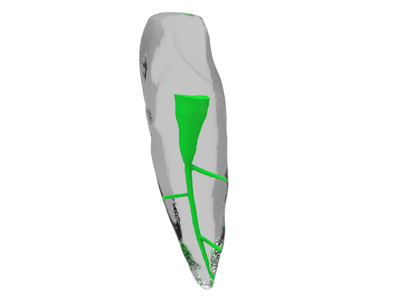Central Upper Incisor. Single canal with 3 lateral canals.